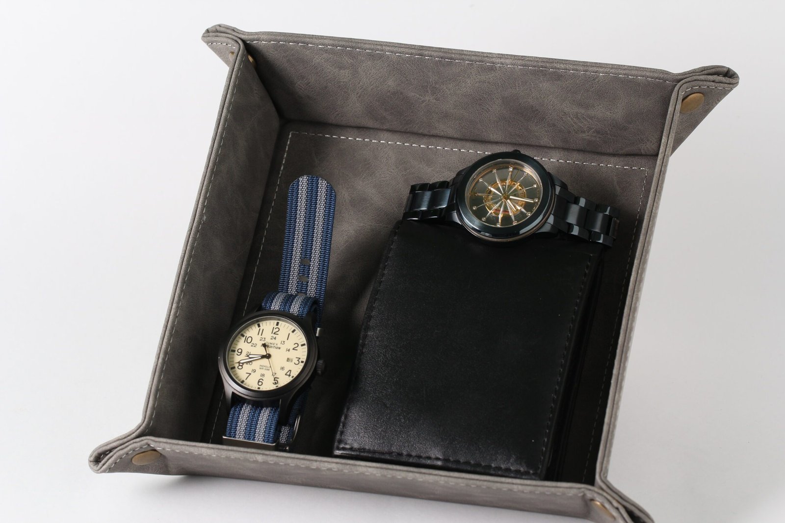 A bandeja em couro sintético é o acessório ideal para apoiar seus relógios sem precisar escondê-los em gavetas ou caixas. Pensada para oferecer praticidade no dia a dia, ela mantém seu relógio favorito sempre à vista e pronto para o próximo uso. Dessa maneira, você otimiza sua rotina com elegância e funcionalidade. Seja para quem coleciona relógios ou simplesmente valoriza organização e agilidade, essa bandeja se apresenta como uma escolha funcional, estilosa e atemporal.