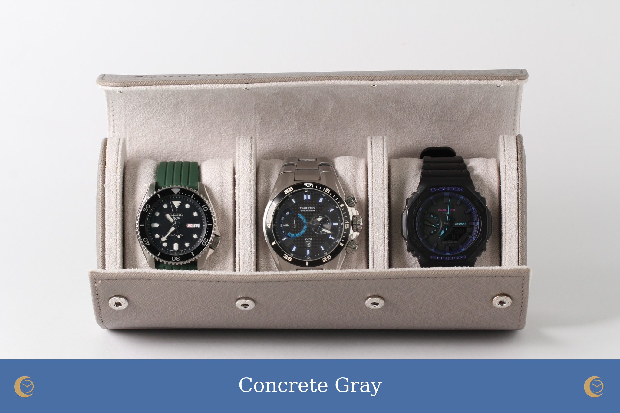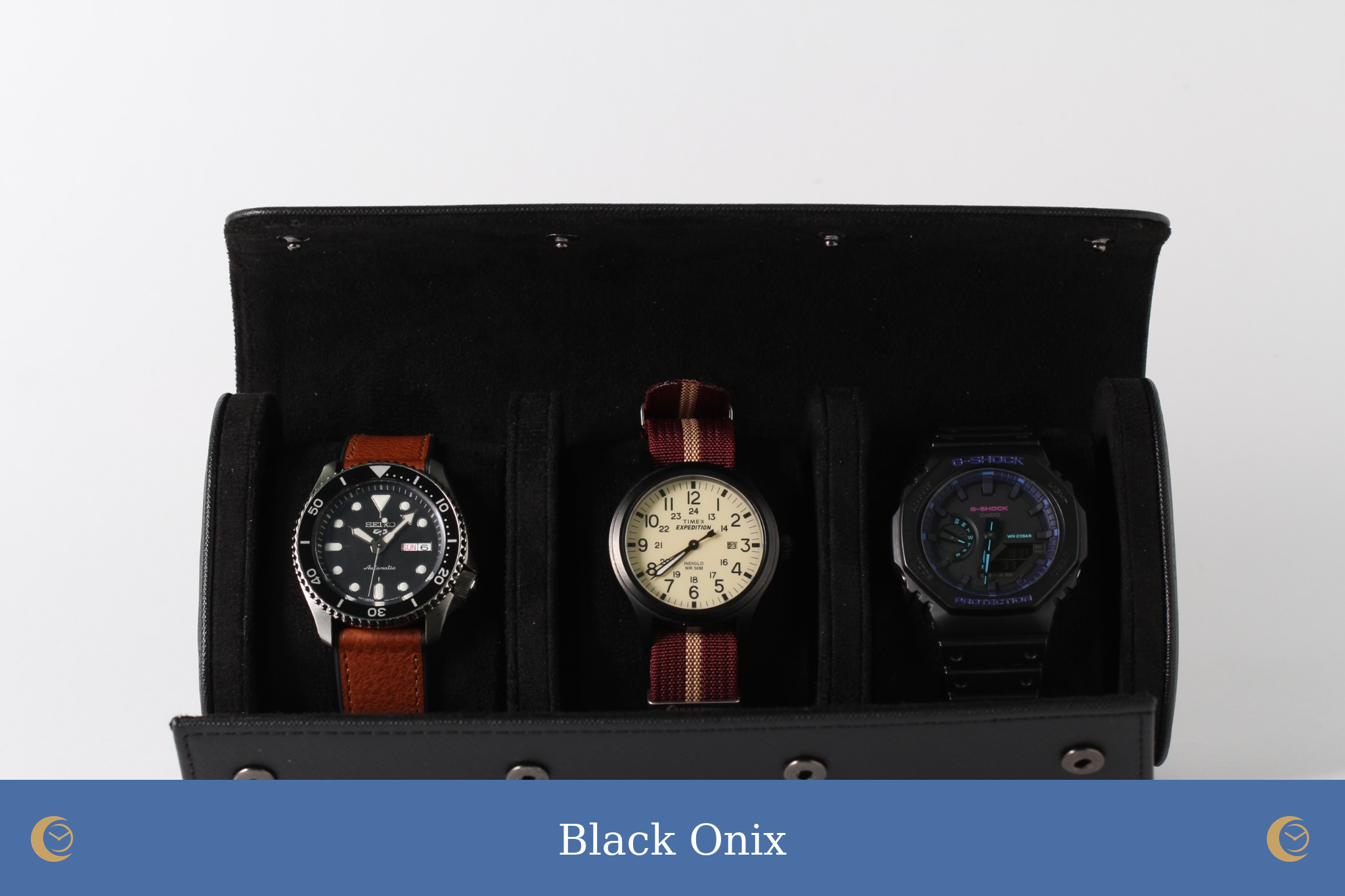 Com capacidade para acomodar até três relógios, o estojo é planejado para atender diferentes necessidades de armazenamento. Cada compartimento é projetado para manter seus relógios seguros, evitando riscos ou danos. Para colecionadores e viajantes que prezam pela integridade e conservação de peças valiosas, esse estojo é um investimento indispensável.