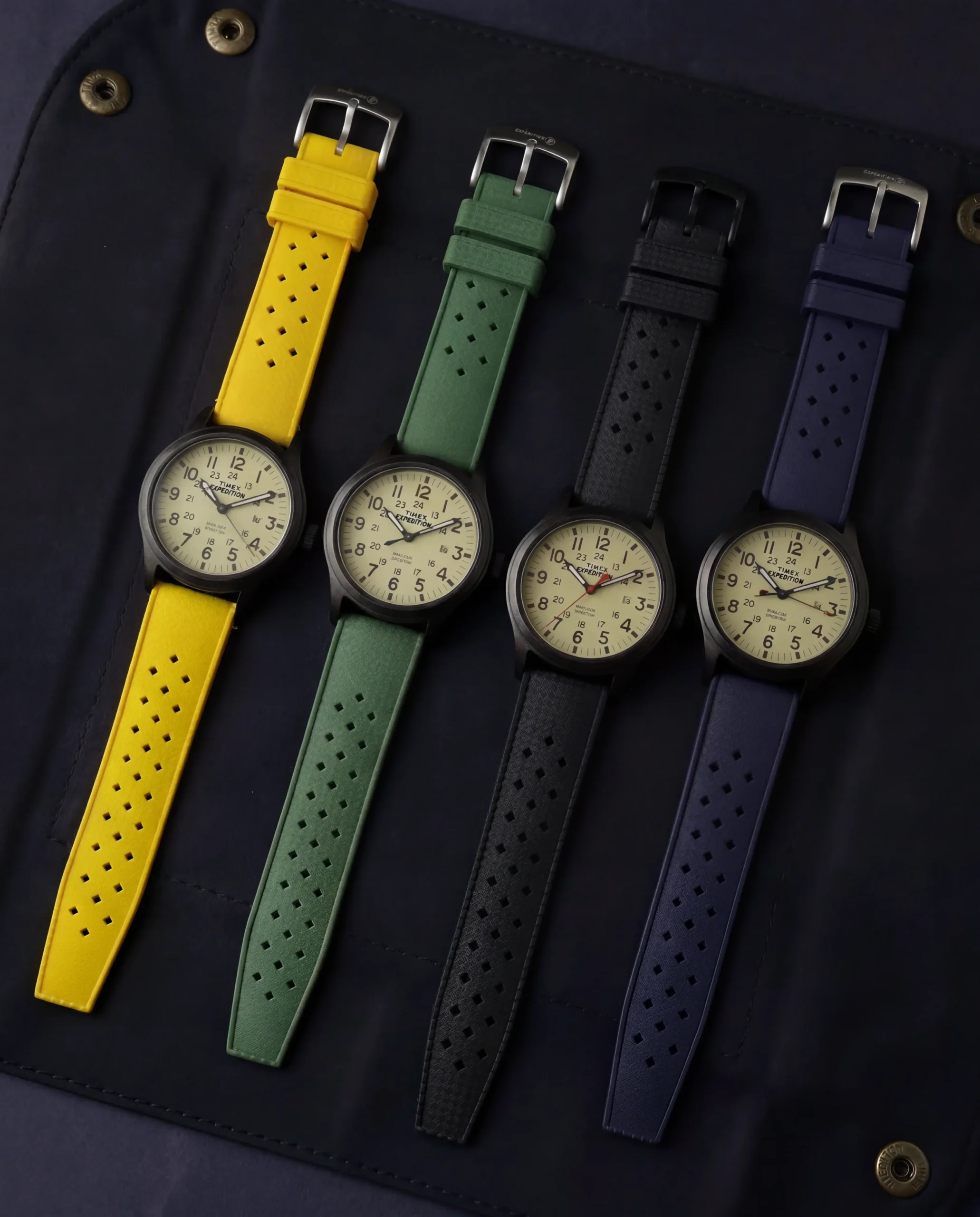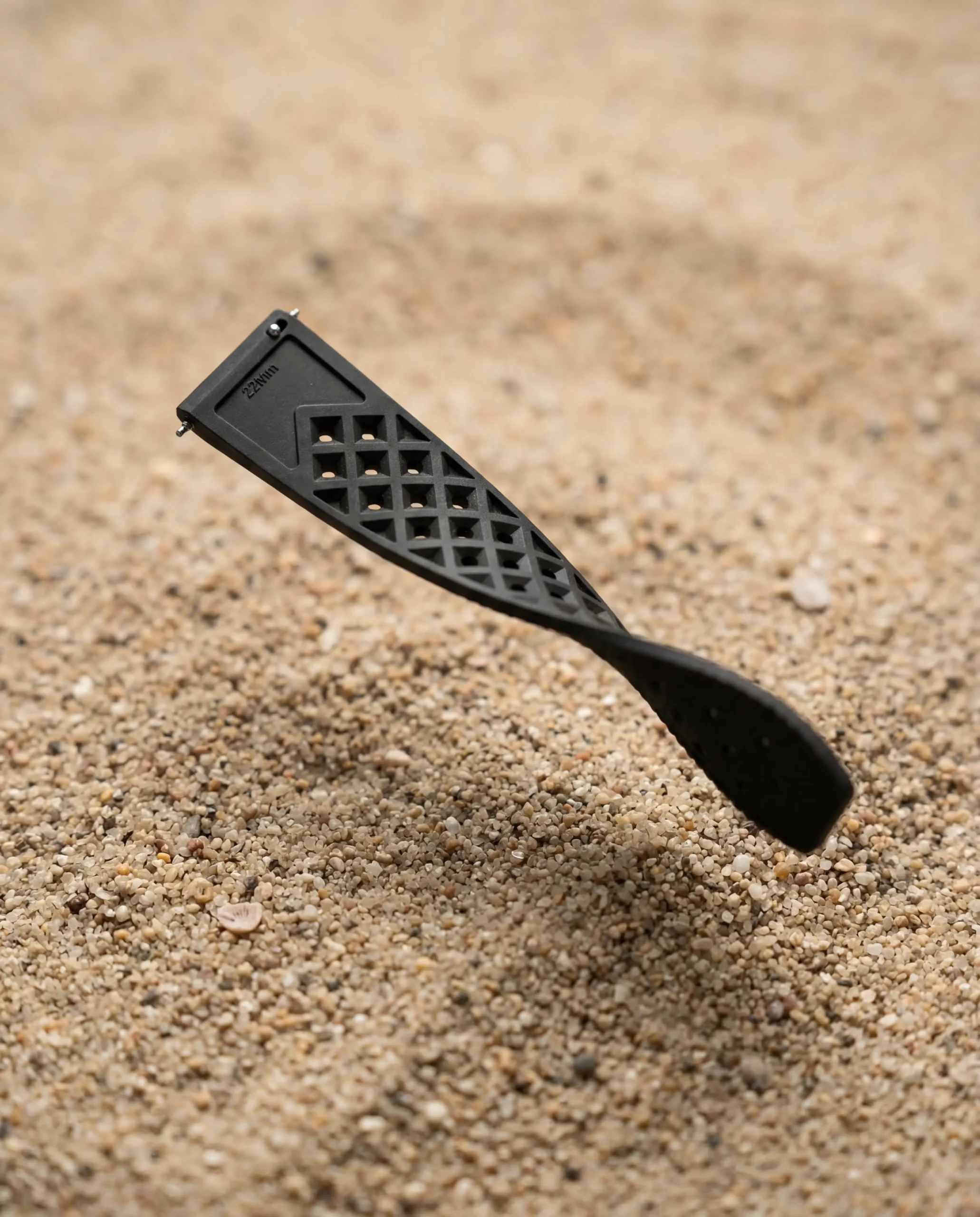 Inspirada nas clássicas pulseiras de mergulho das décadas de 60 e 70, a pulseira Tropical resgata o design original com uma releitura moderna, feita para o uso urbano e esportivo. A textura perfurada garante um visual marcante, enquanto o novo material eleva o conforto a outro nível. Ideal para quem valoriza história, mas exige performance atual.